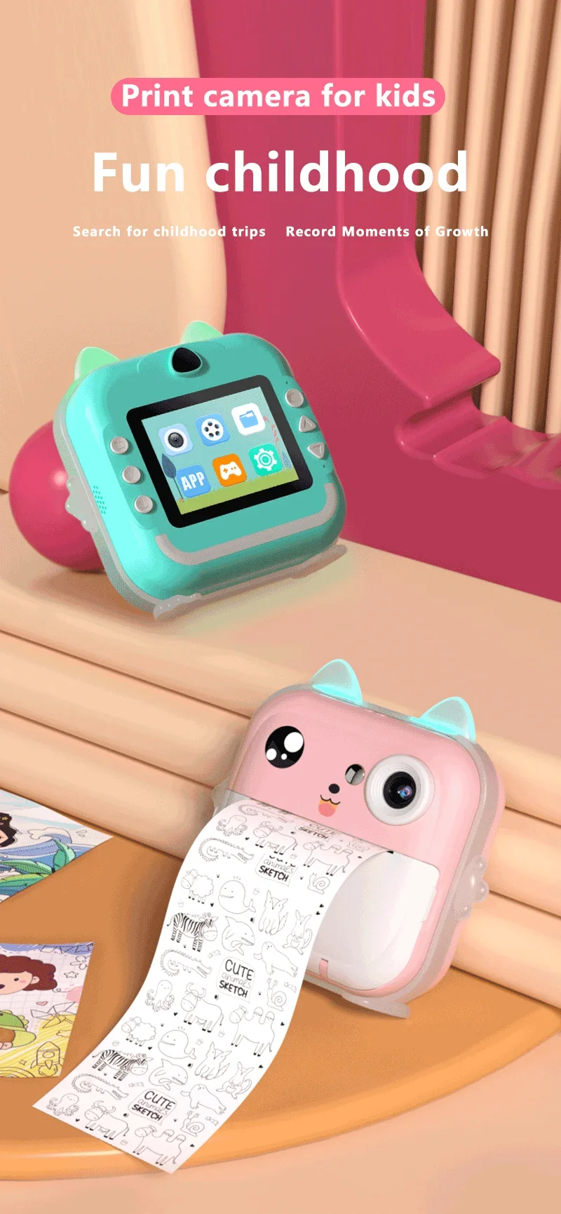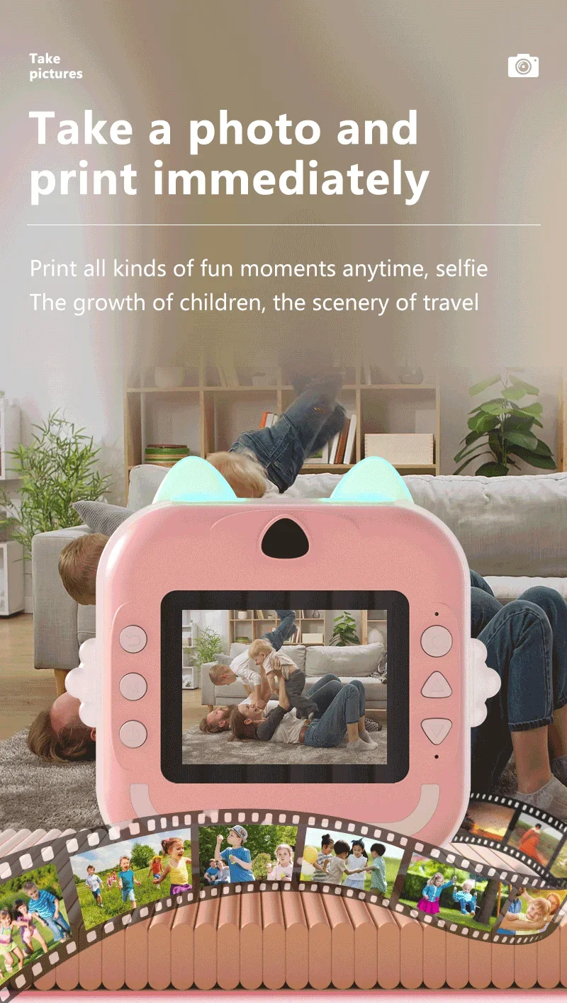 Deixe as crianças experimentarem a magia de capturar, imprimir e reviver os momentos mais especiais da vida, tudo na palma das suas mãos.