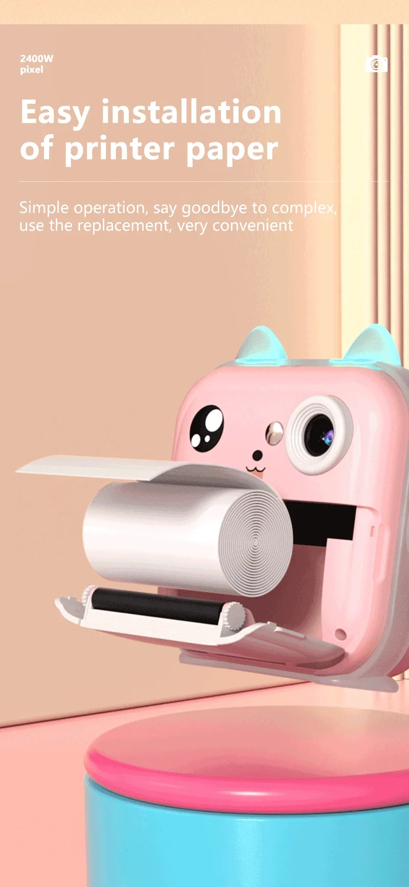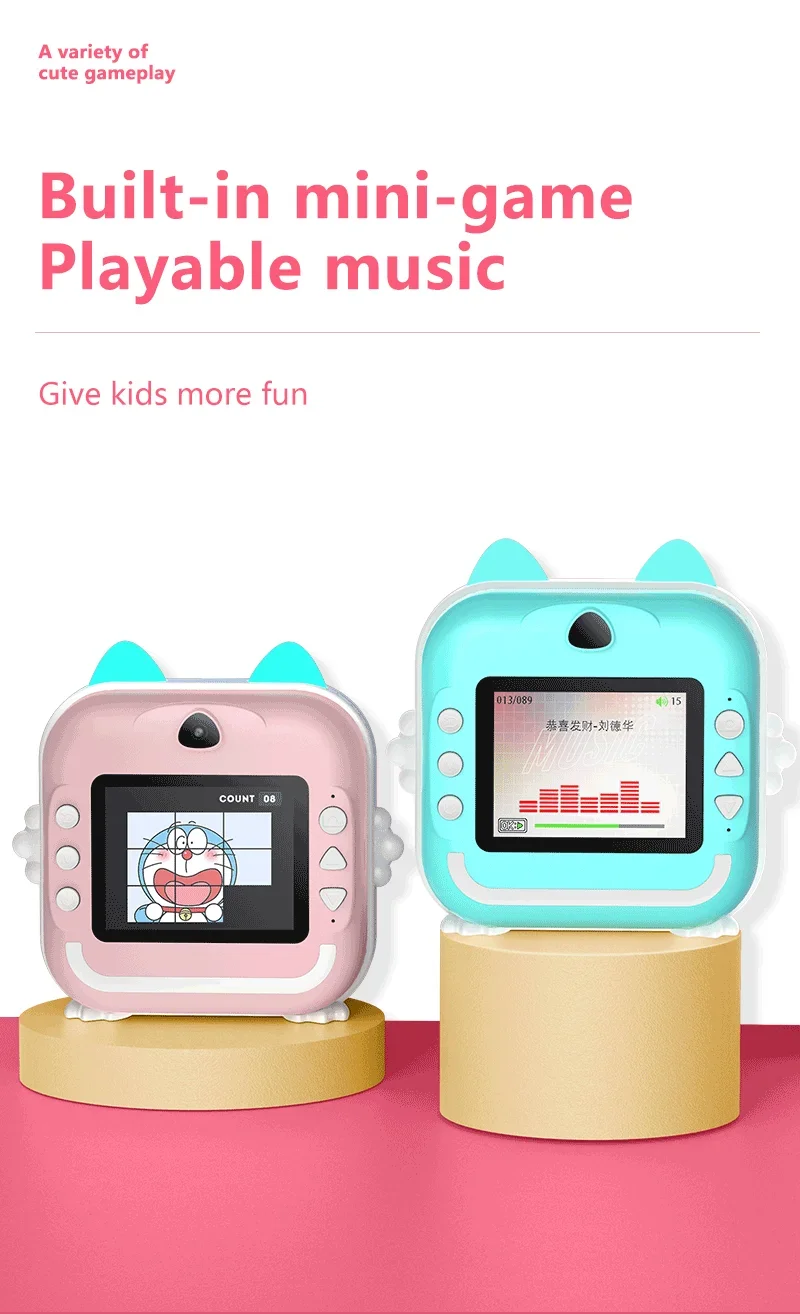 Câmera digital para crianças com impressão térmica térmica.