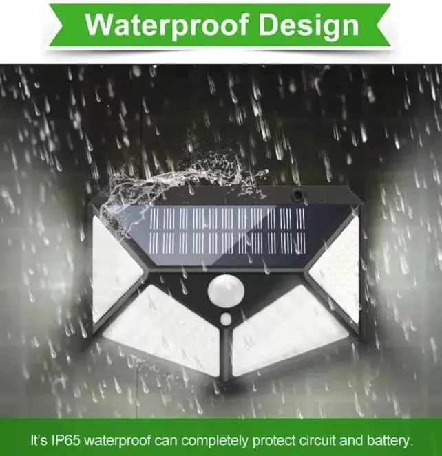 LÂMPADA SOLAR DE 100 LEDS, ideal para áreas externas, jardins, portões