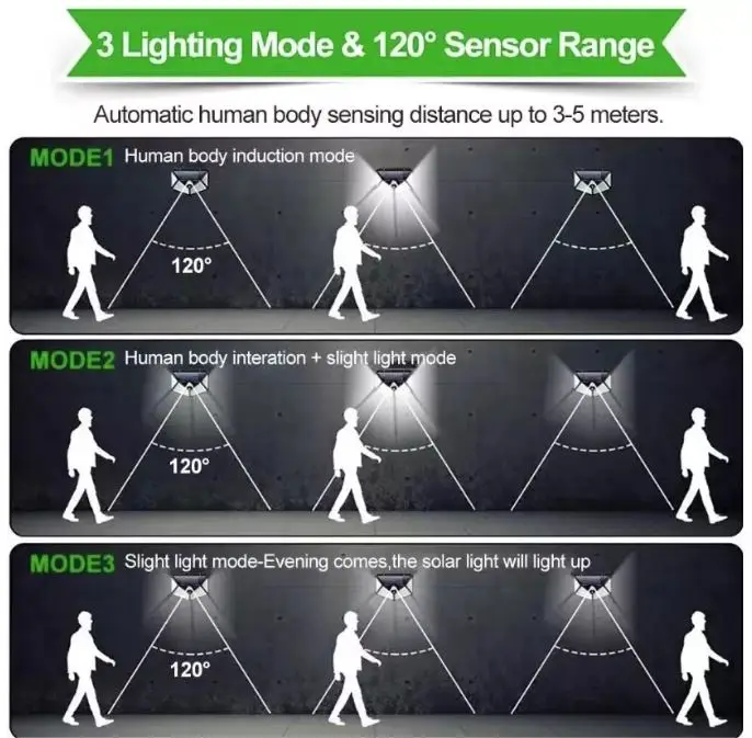 Mode 1: Stays off and lights up 100% of the brightness with motion sensor for 15-30 seconds and then turns off;