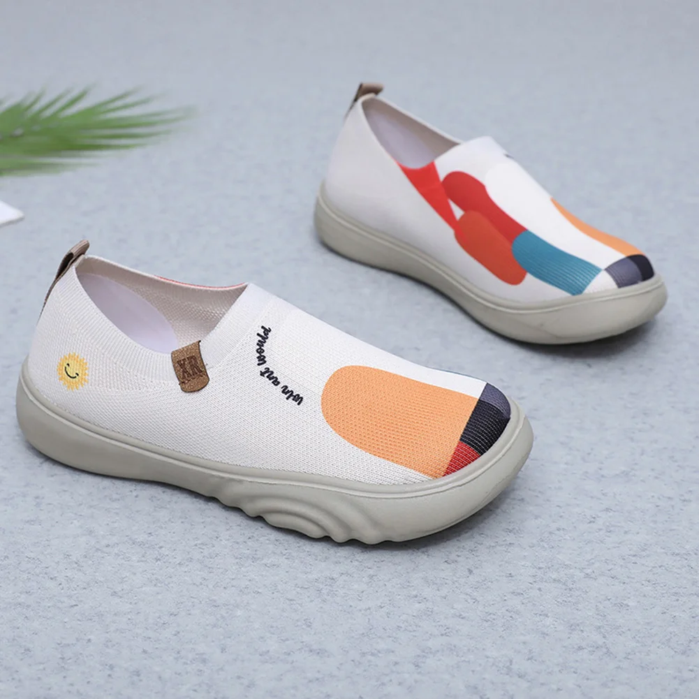 Mocassins femininos pintados, bico redondoCaracterísticas: