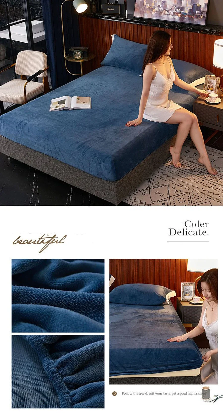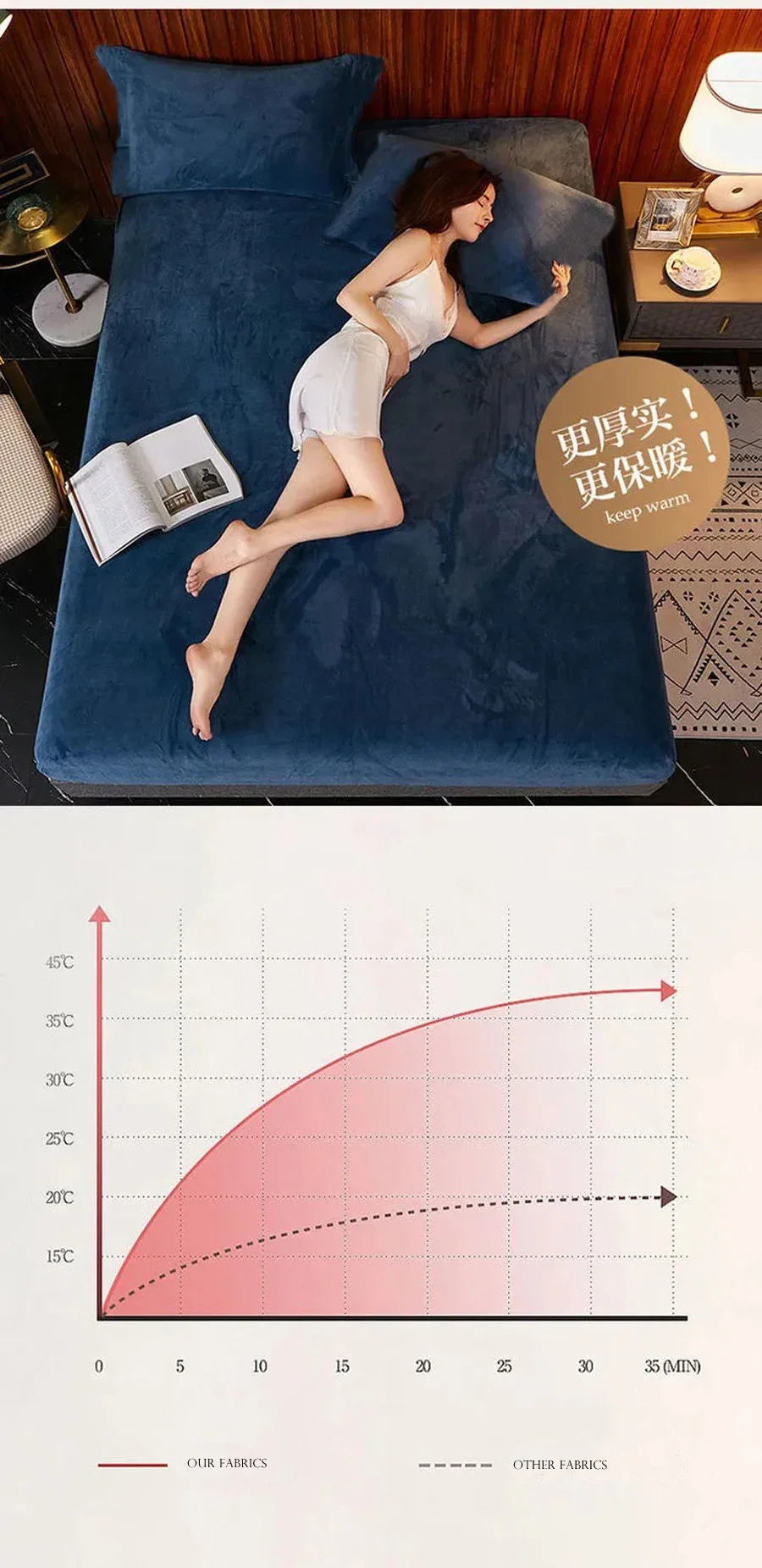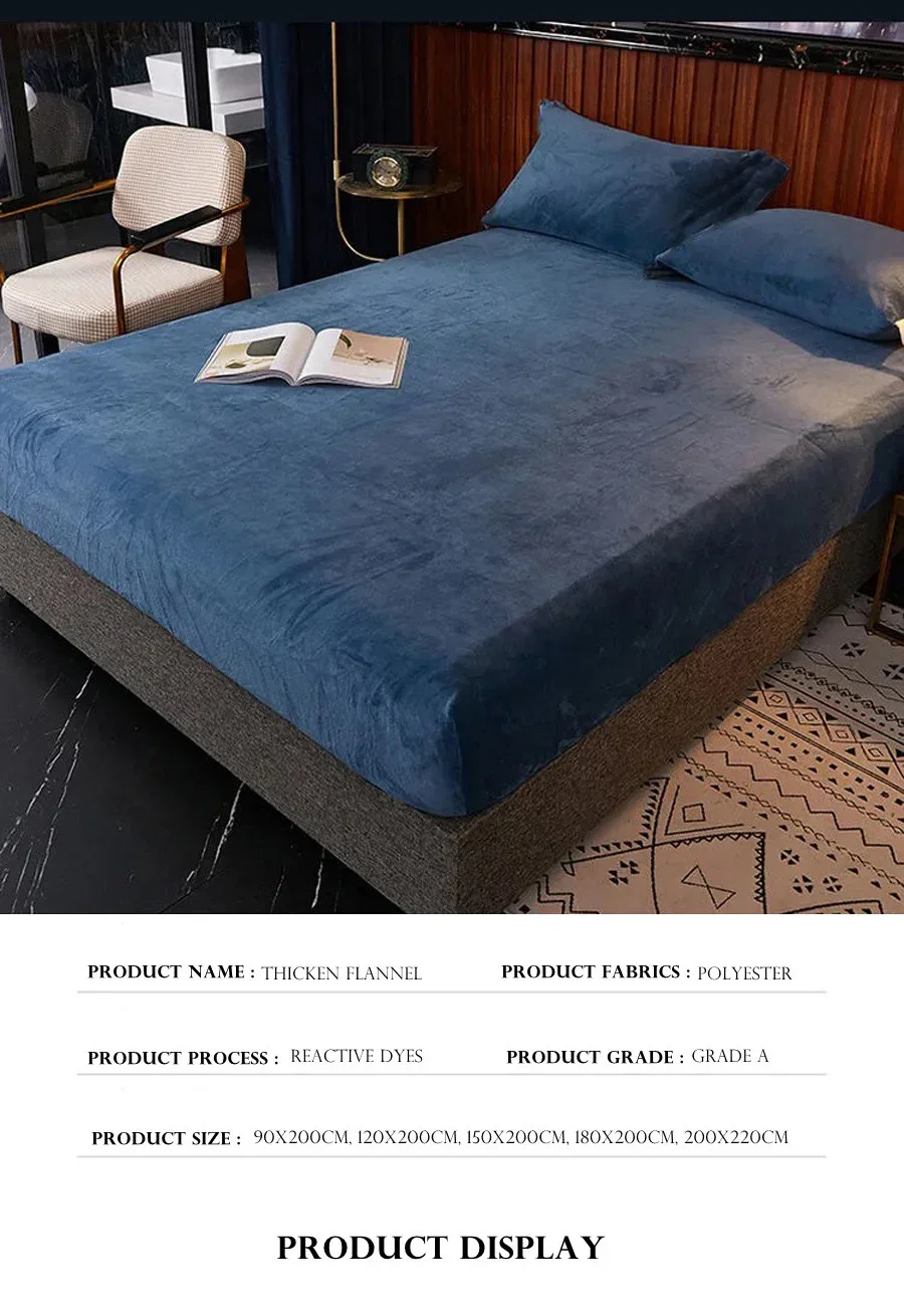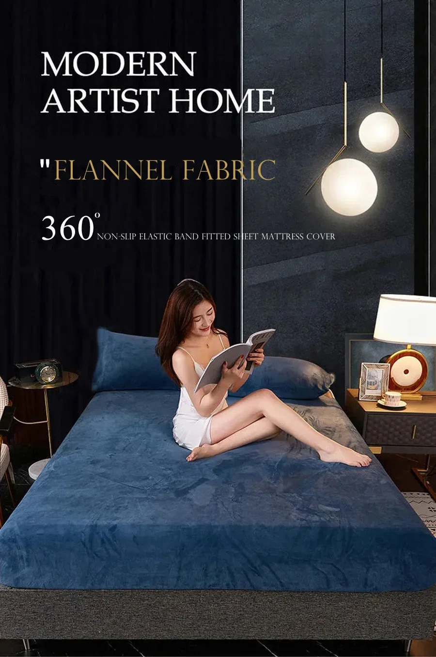WASART 26CM high universal elastic band fitted sheet mattress cover winter warm solid flannel king size bed sheet dust protector