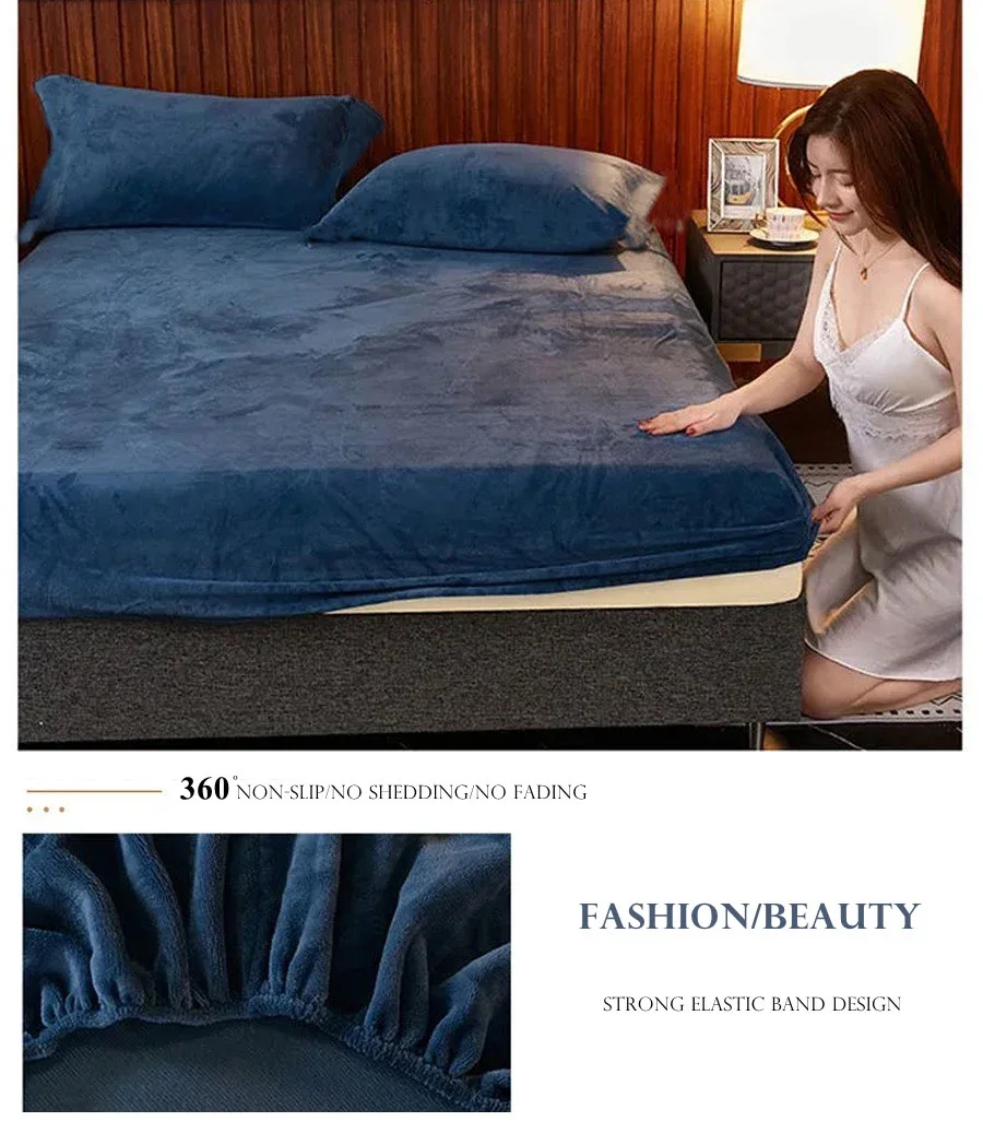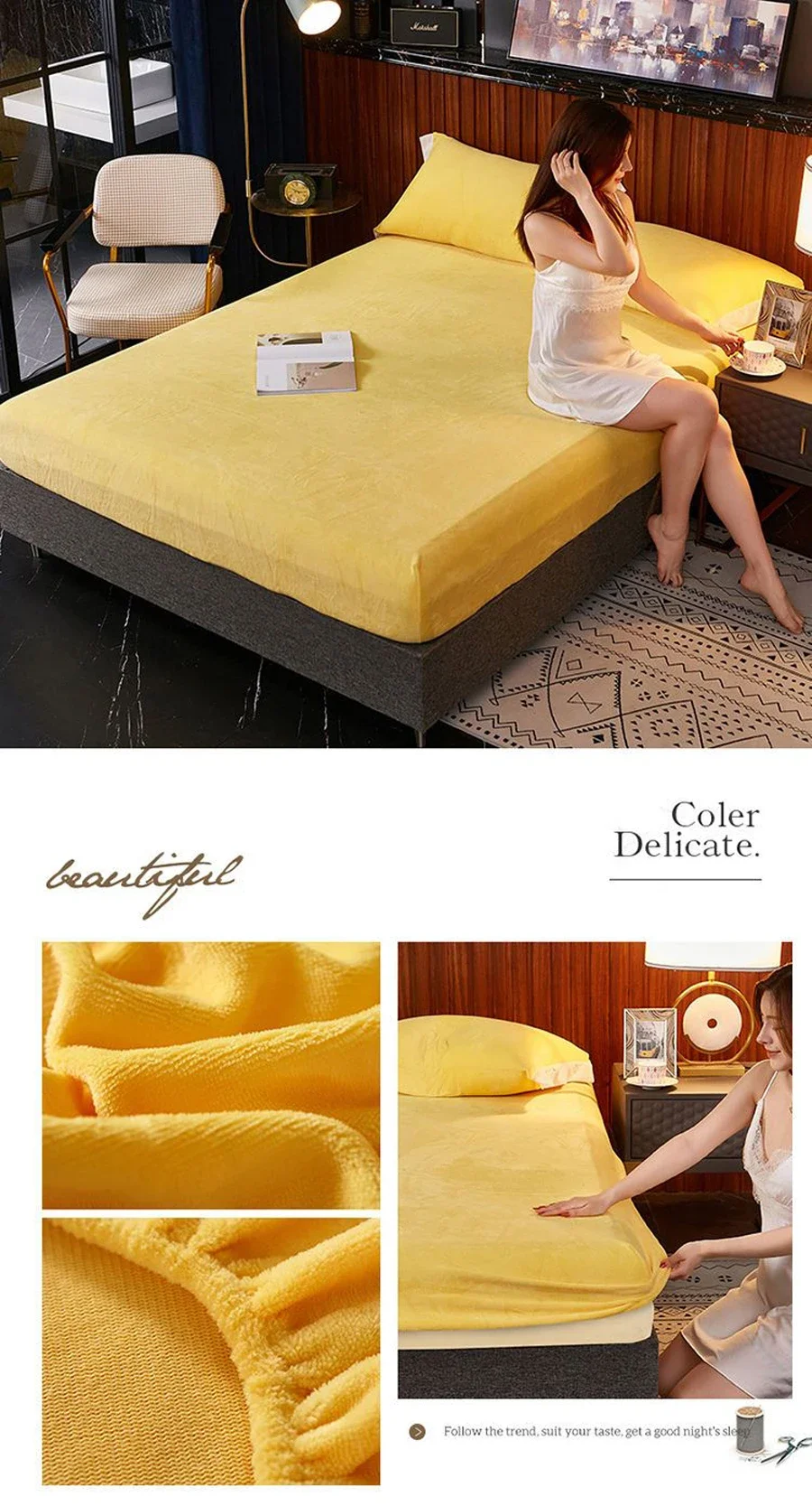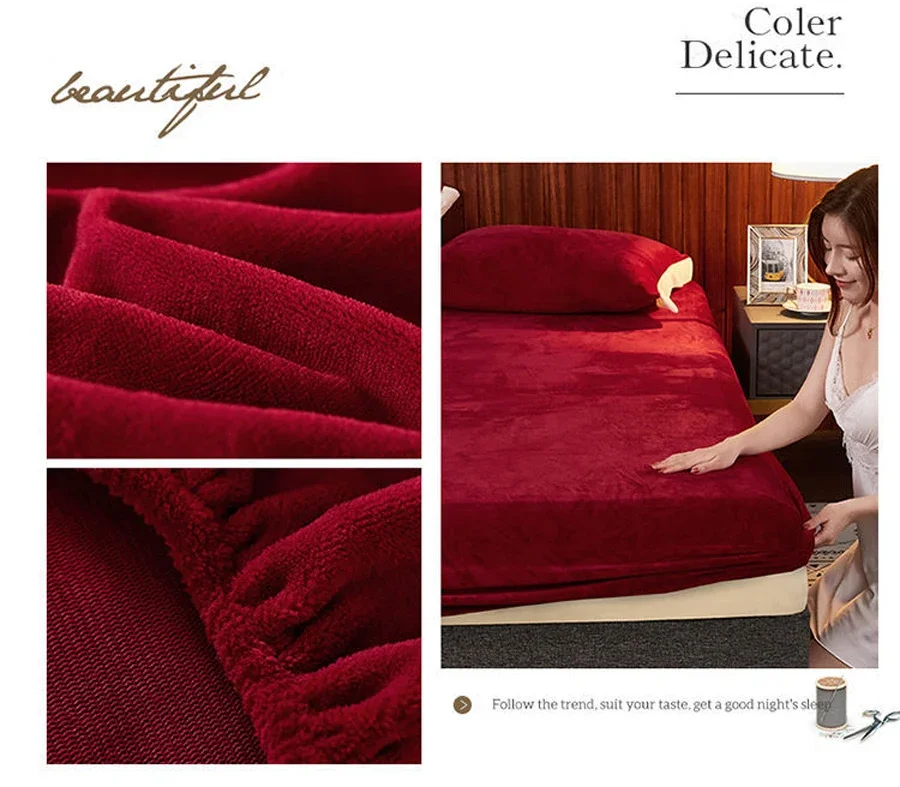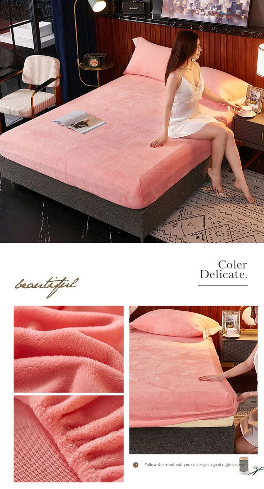 WASART 26CM high universal elastic band fitted sheet mattress cover winter warm solid flannel king size bed sheet dust protector