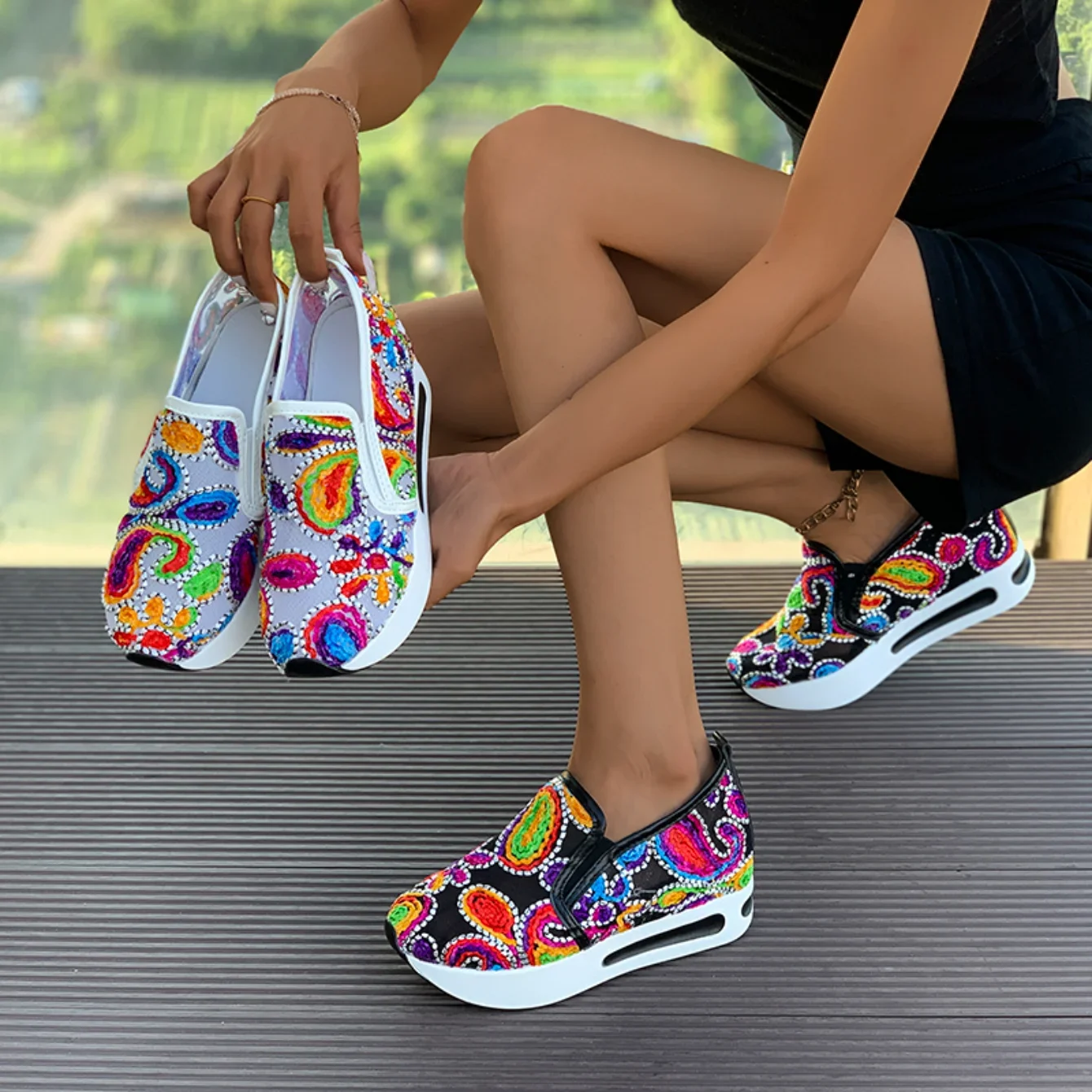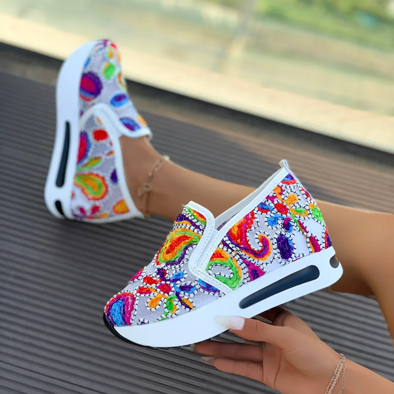 Tênis estilo mocassim bordado. malha respirável