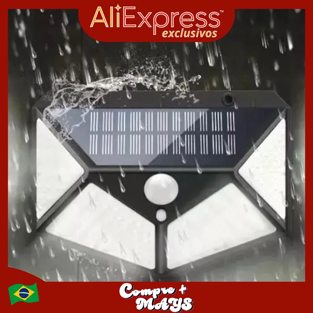 LÂMPADA SOLAR DE 100 LEDS, ideal para áreas externas, jardins, portões