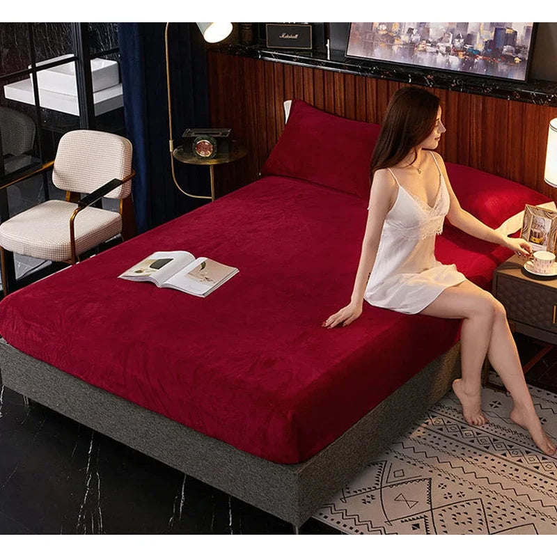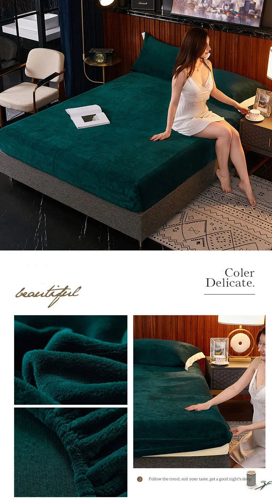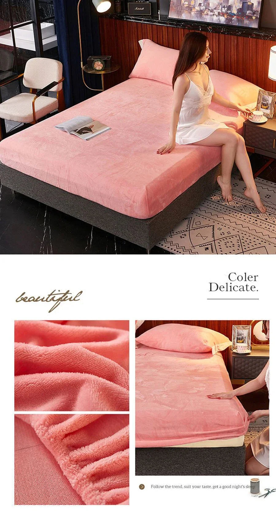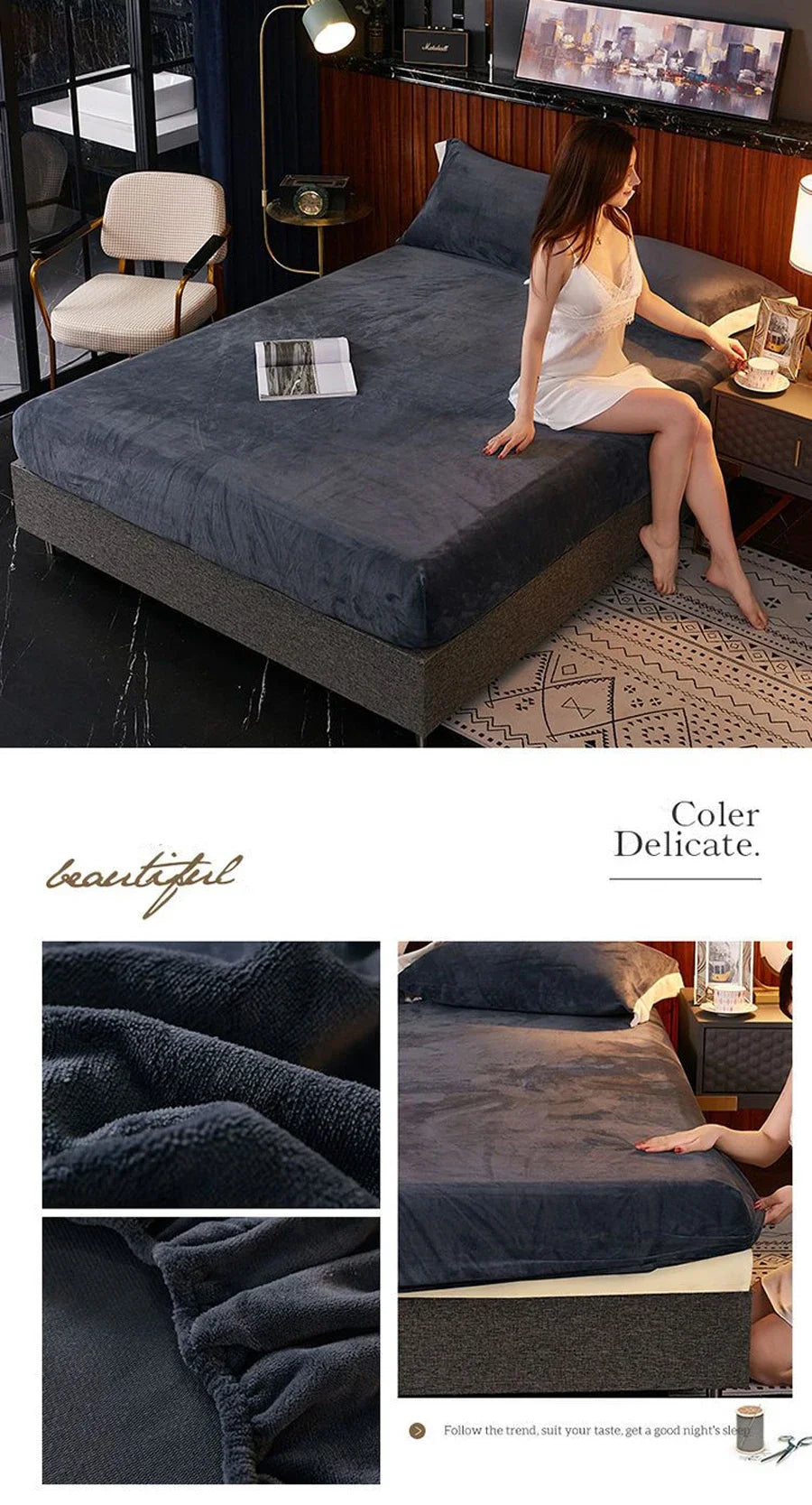 WASART 26CM high universal elastic band fitted sheet mattress cover winter warm solid flannel king size bed sheet dust protector